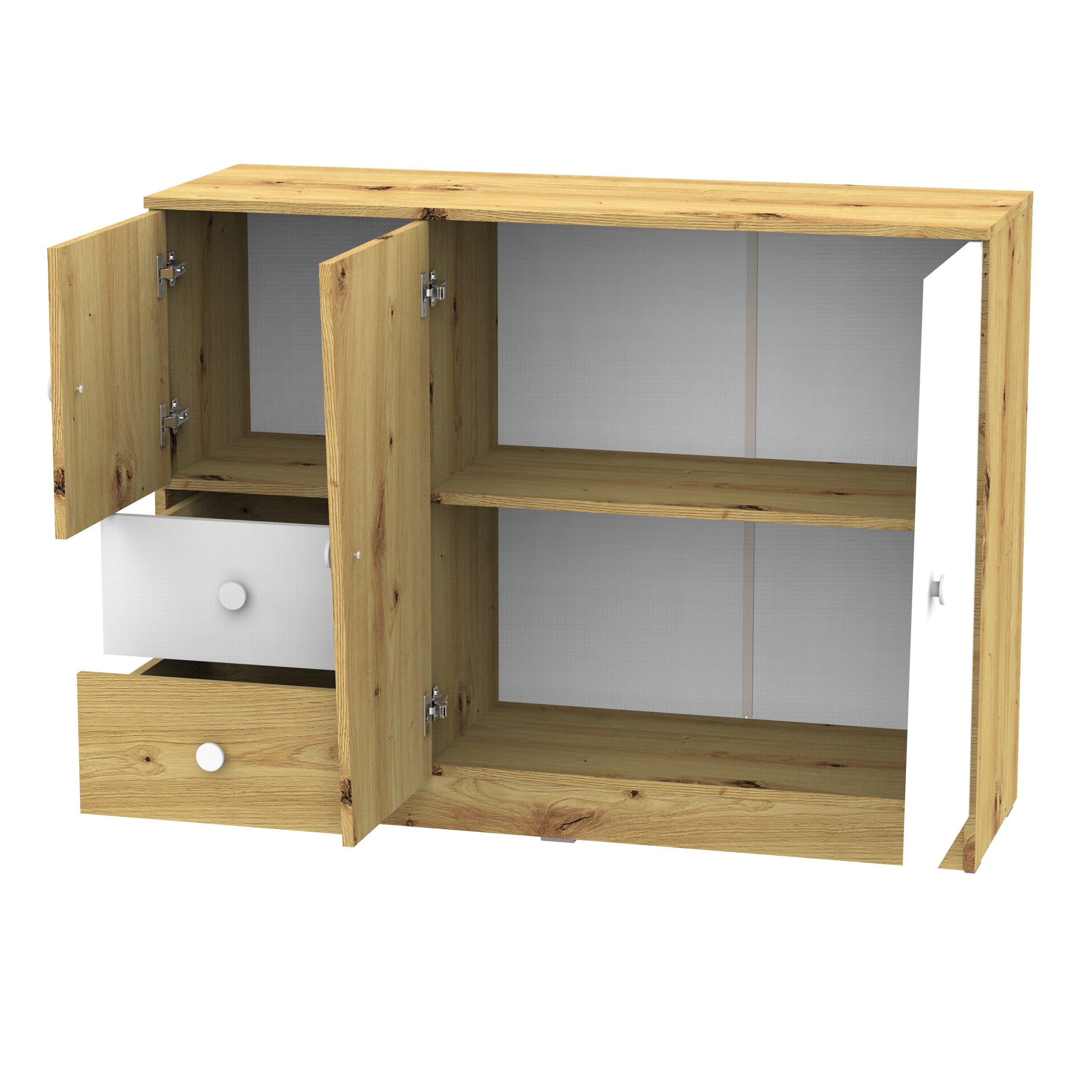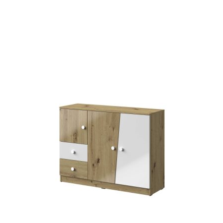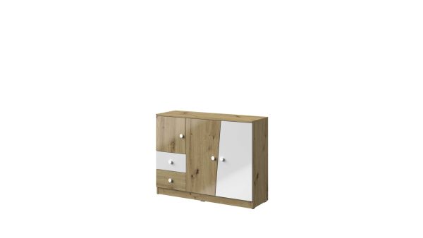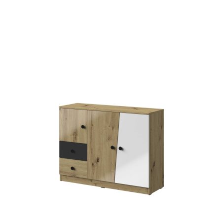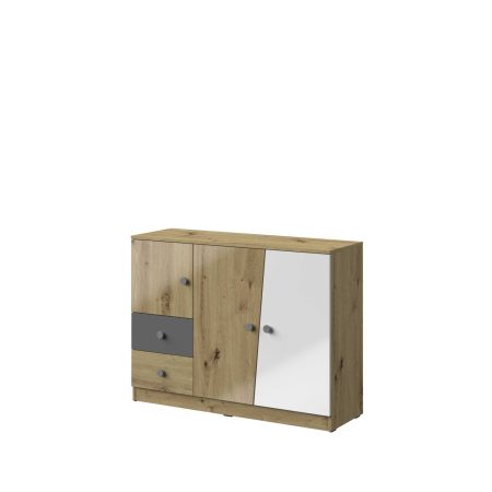 Ponadto różnorodna i nowoczesna kolorystyka frontów oraz ich kształt, wyróżniają mebel i podkreślają jego charakter.